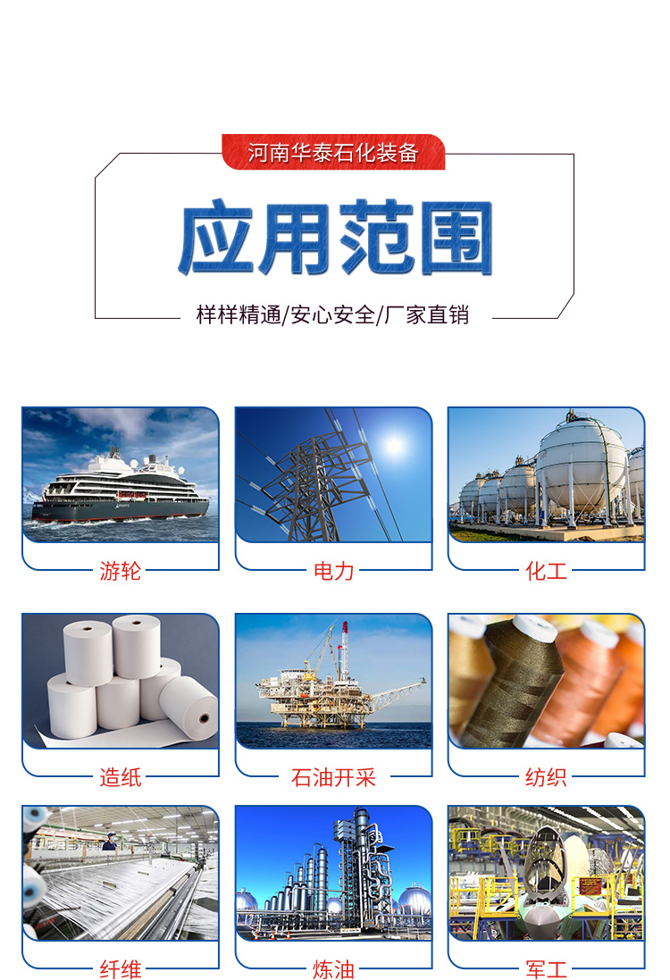 應(yīng)用范圍:石油、化工、化纖、醫(yī)藥、紡織印染、建材、木材加工、植物油加工等行業(yè)